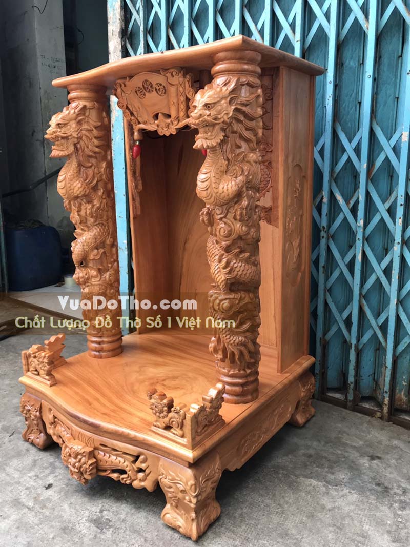 Bàn thờ ông địa cột chạm rồng ngậm ngọc BTTT-024
