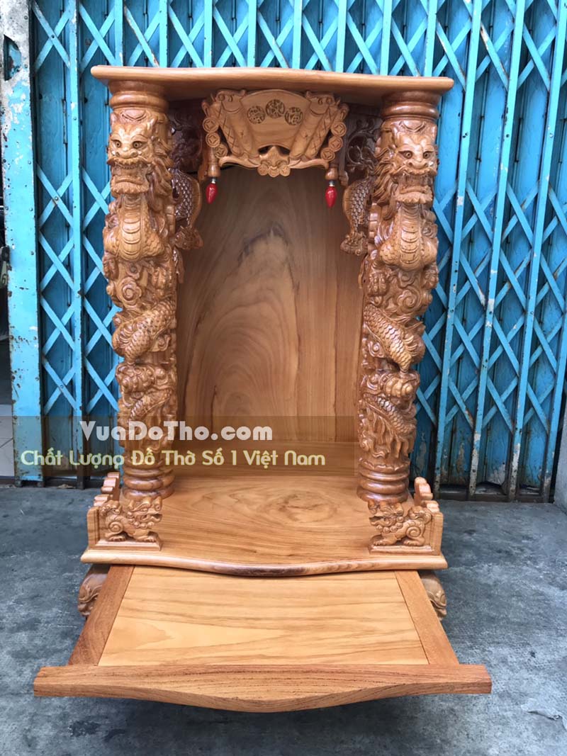Bàn thờ ông địa cột chạm rồng ngậm ngọc