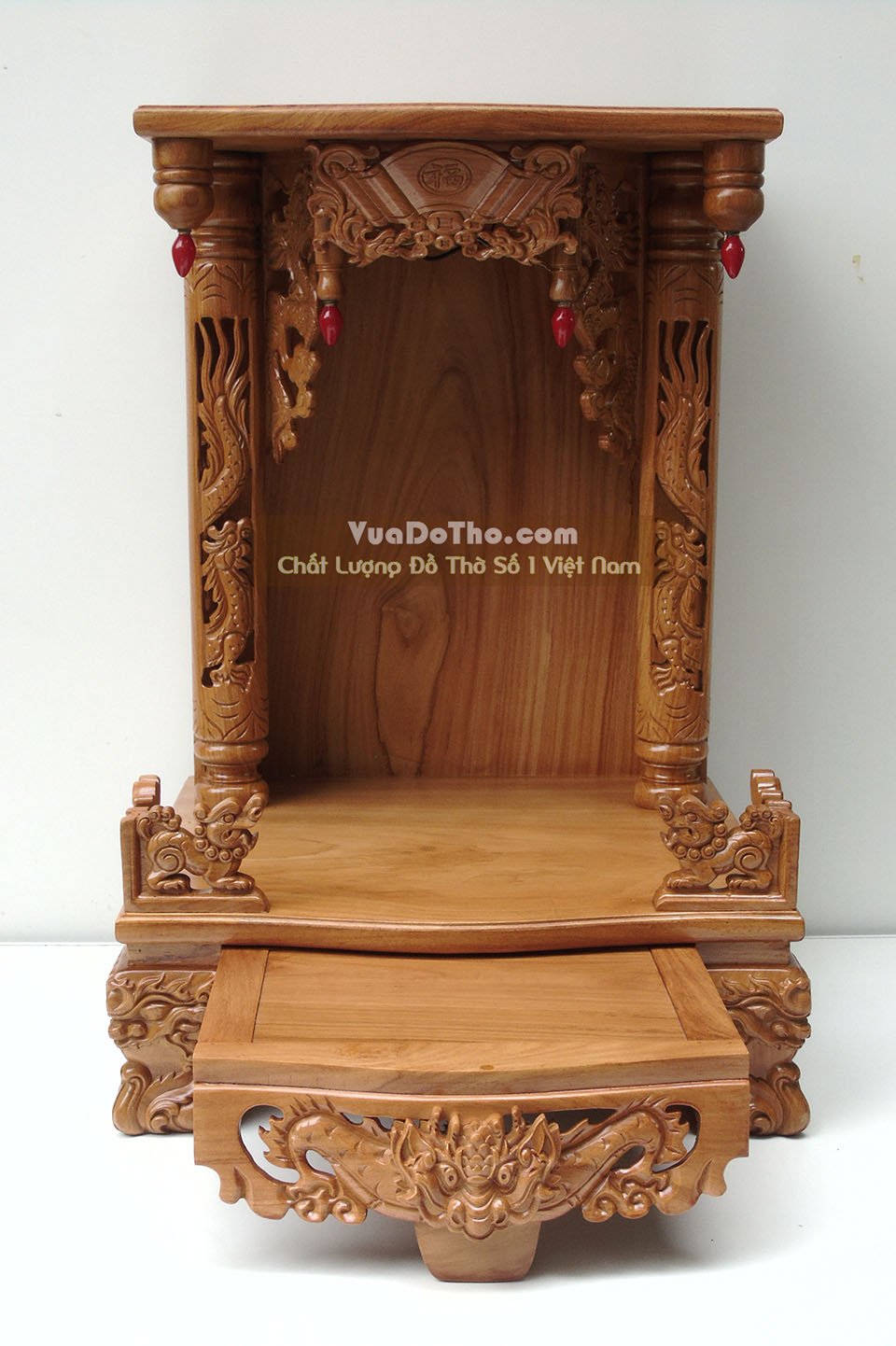 Mọi chi tiết trên sản phẩm đều được chạm khắc rất tỉ mỉ và tinh tế. Sản phẩm cũng được trang bị thêm ngăn kéo xếp giúp không gian trưng bày vật phẩm cúng kính thêm rộng rãi, có thể kéo ra kéo vào khá tiện dụng