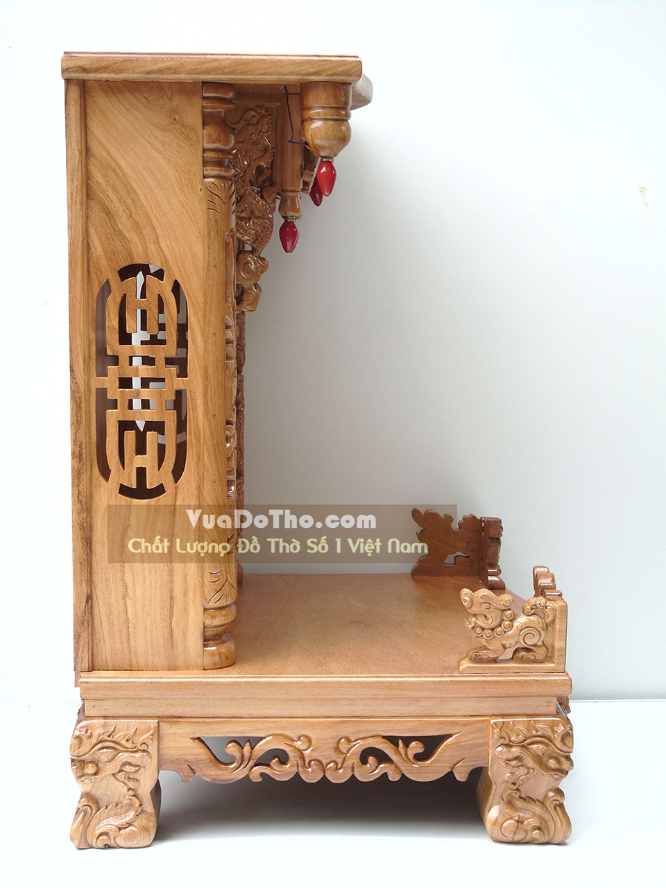 Nếu thực sự bạn đang muốn thỉnh một mẫu bàn thờ phù hợp với những nhu cầu trên thì BTTT-019 là một sản phẩm rất tốt dành cho bạn. Sản phẩm được làm từ chất liệu gỗ gõ đỏ, đây là một loại gỗ quý hiếm hiện nay, rất bền và chắc chắn, sản phẩm hoàn toàn có thể đáp ứng được nhu cầu thờ cúng Thần Tài Ông Địa suốt đời của gia chủ.