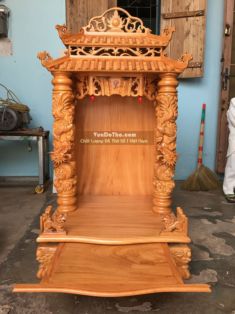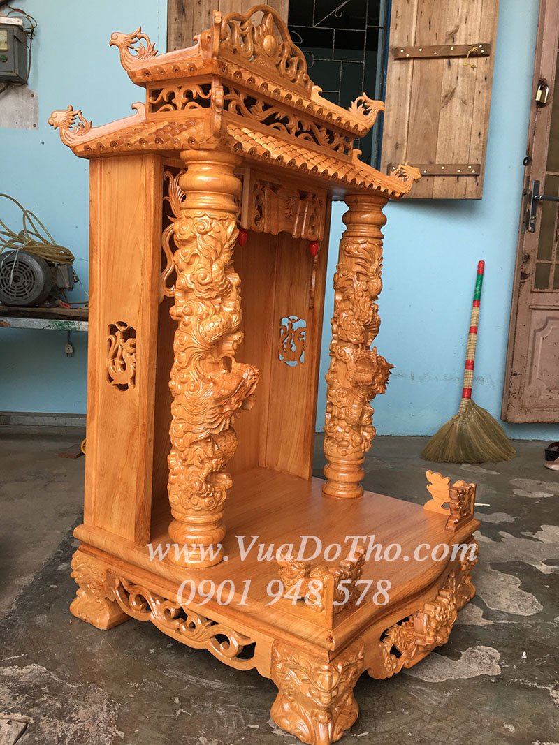 Bàn thờ ông địa mái chùa ngói ống cột chạm rồng mây 60