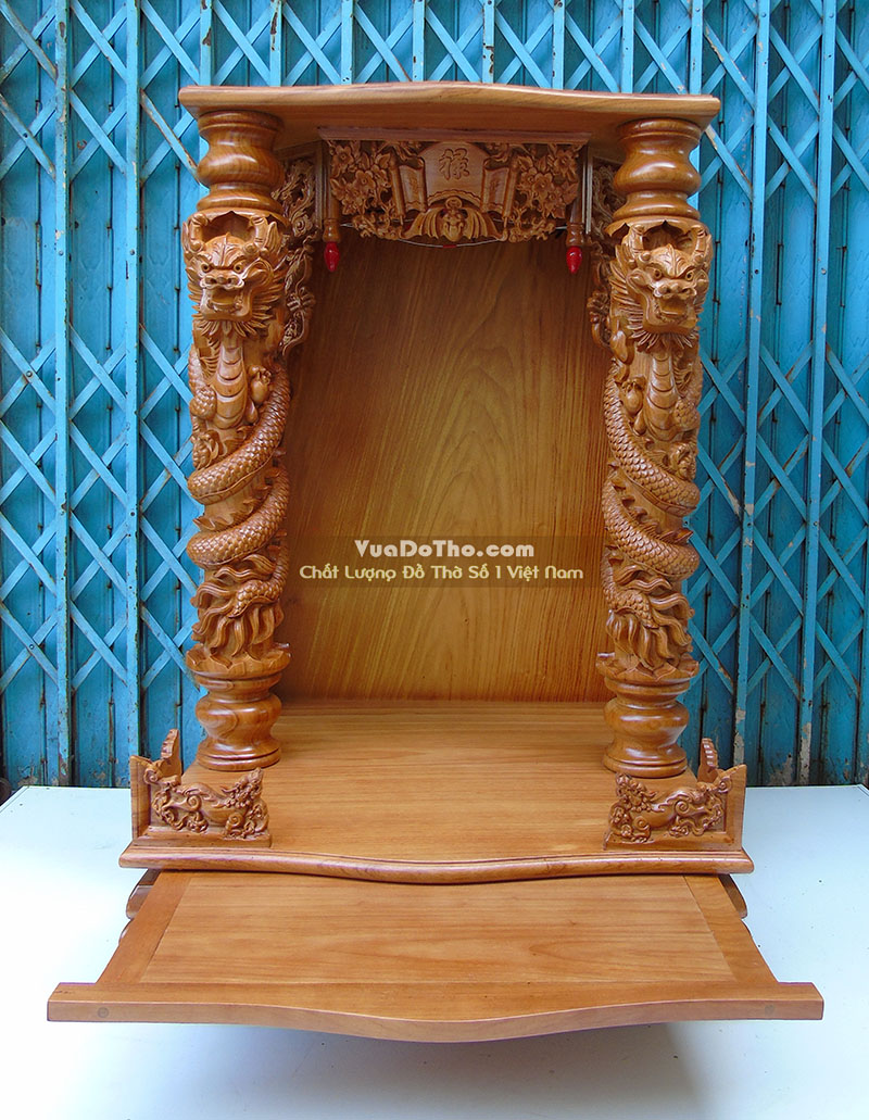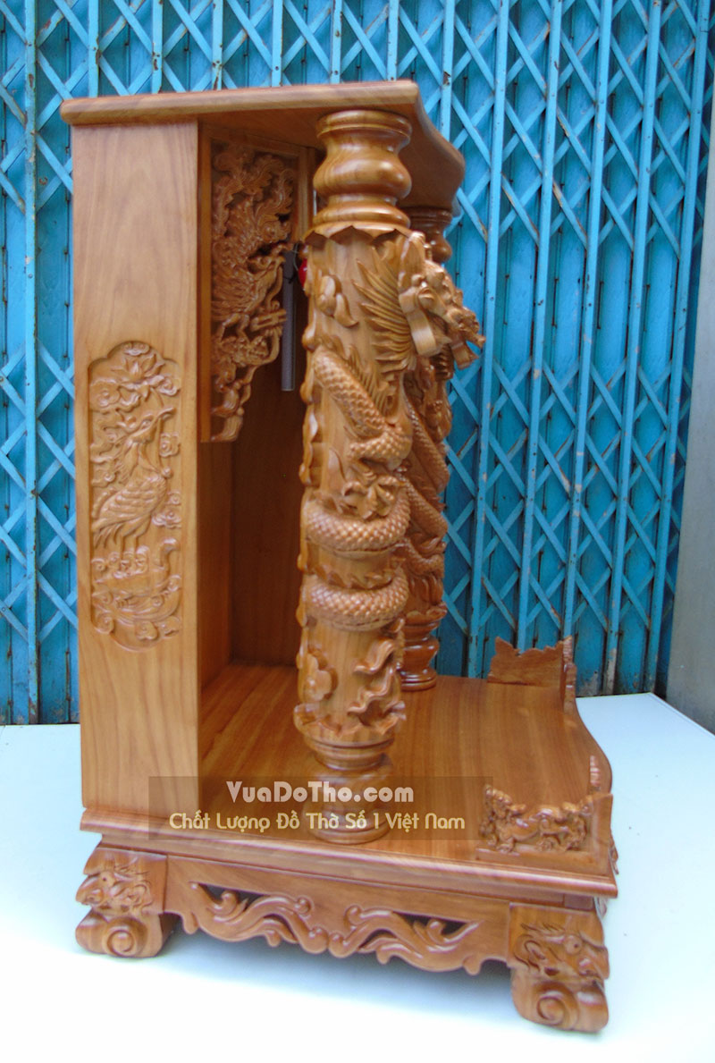 Bàn thờ thần tài đẹp cột chạm rồng phách (60 X 60 X 98)