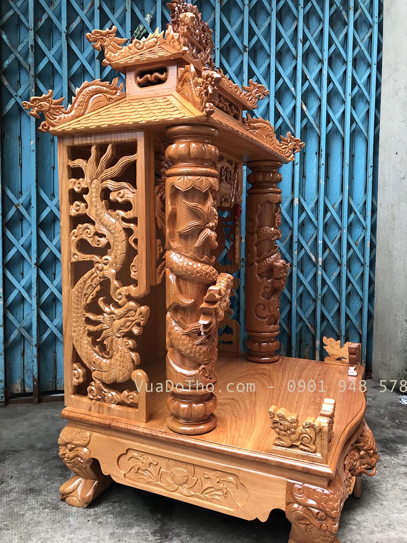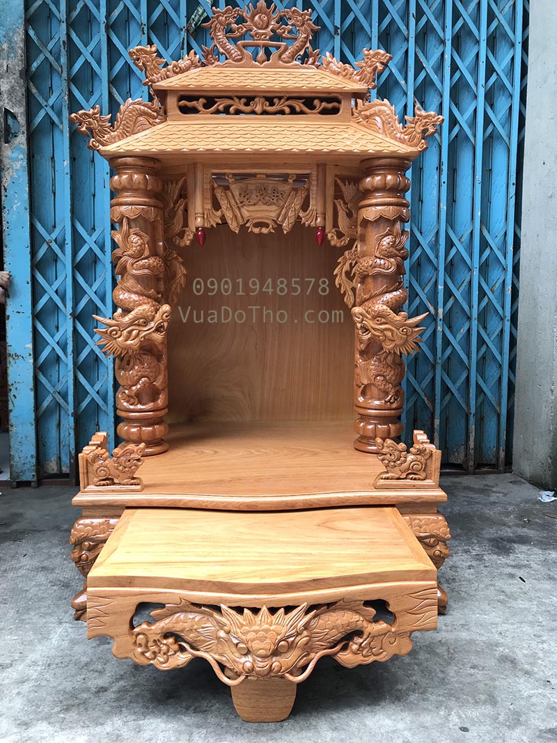 Đặc biệt, phần bên hông bàn thờ, những người thợ của chúng tôi đã sử dụng những tấm gỗ nguyên để tạo hình rồng và đục xuyên tấm. Với bàn tay khéo léo của những người thợ lành nghề, đôi rồng đã được tạo ra rất đẹp và sắc nét